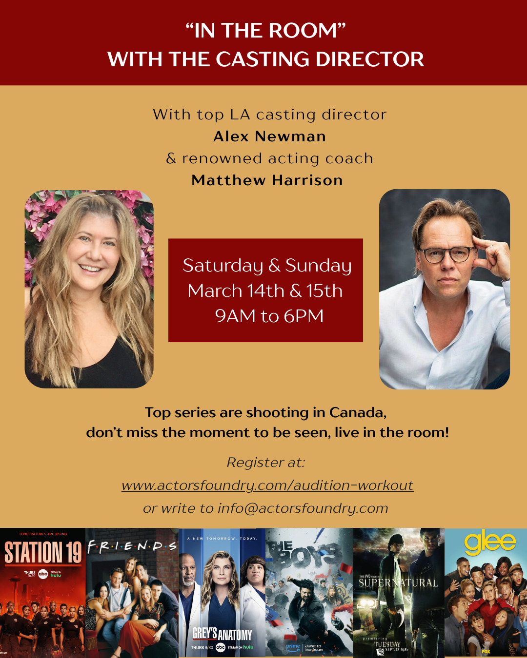 This workshop is specifically designed to prepare the actor for the VERY busy - and competitive - Vancouver film and television industry.